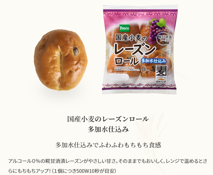【1位】国産小麦のレーズンロール 多加水仕込み(Pasco)